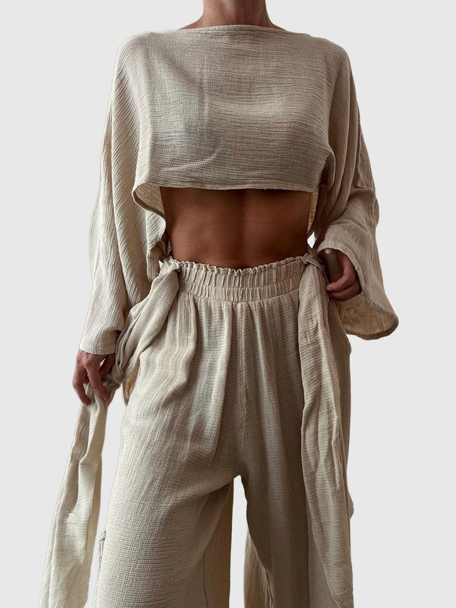 עשוי מפשתן פרימיום נושם, עם עיצוב קלאסי ועמיד, הוא מבטיח לך להרגיש רעננה, חופשיה ובסטייל – לאורך כל היום.