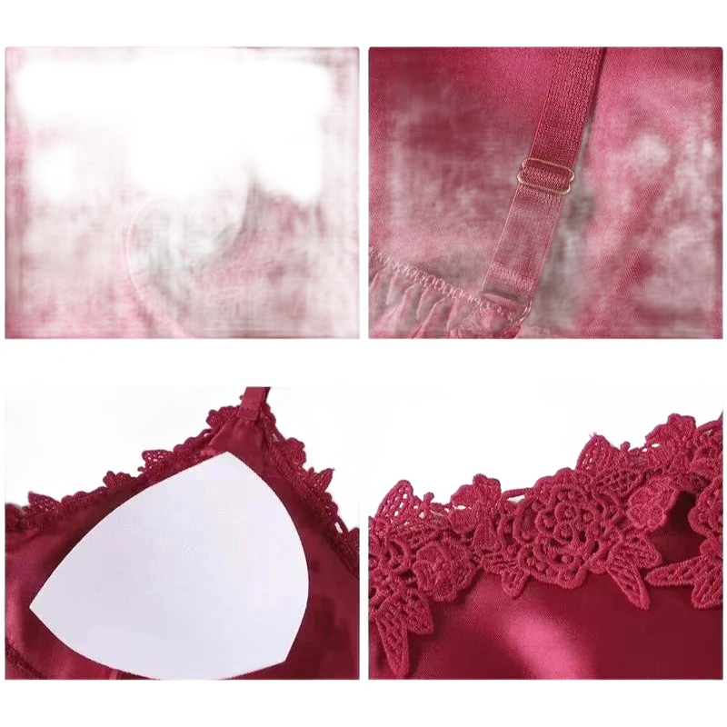 פרטי תחרה אלגנטיים – נגיעות תחרה עדינות מוסיפות תחכום ורומנטיקה, ומדגישות את הברק הרך של הסאטן.