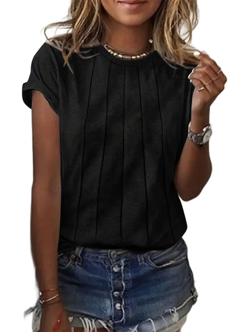 קפלים מחורצים בקדמת החולצה – תפרים אנכיים שמוסיפים טקסטורה ואלגנטיות. יוצרים אשליה של גובה ושומרים על צורתם גם אחרי כביסות מרובות.
