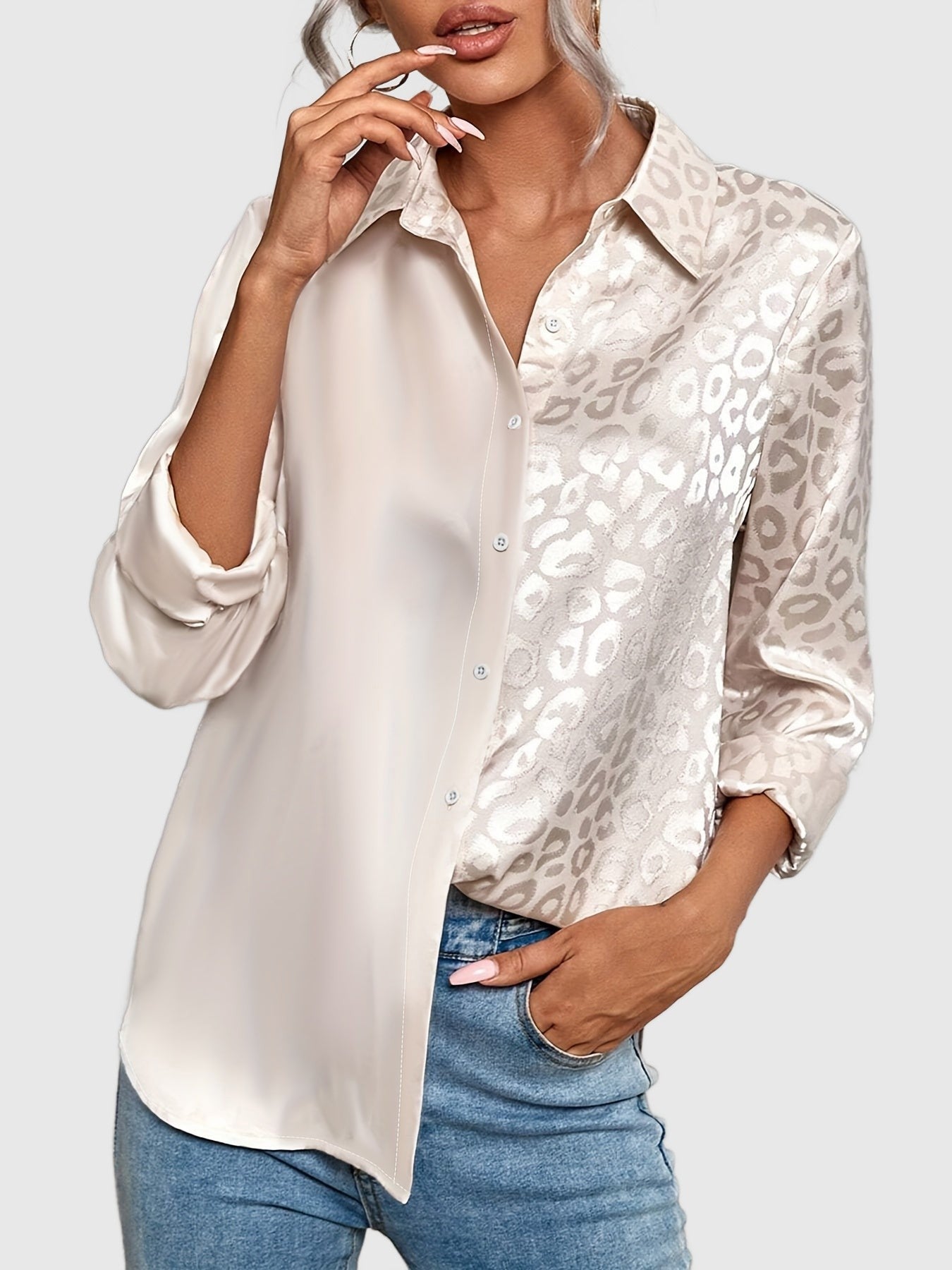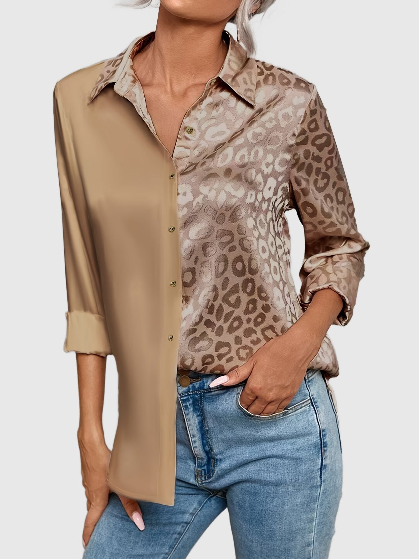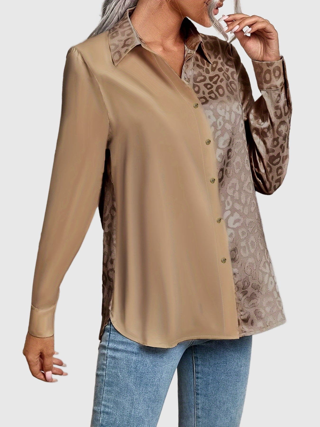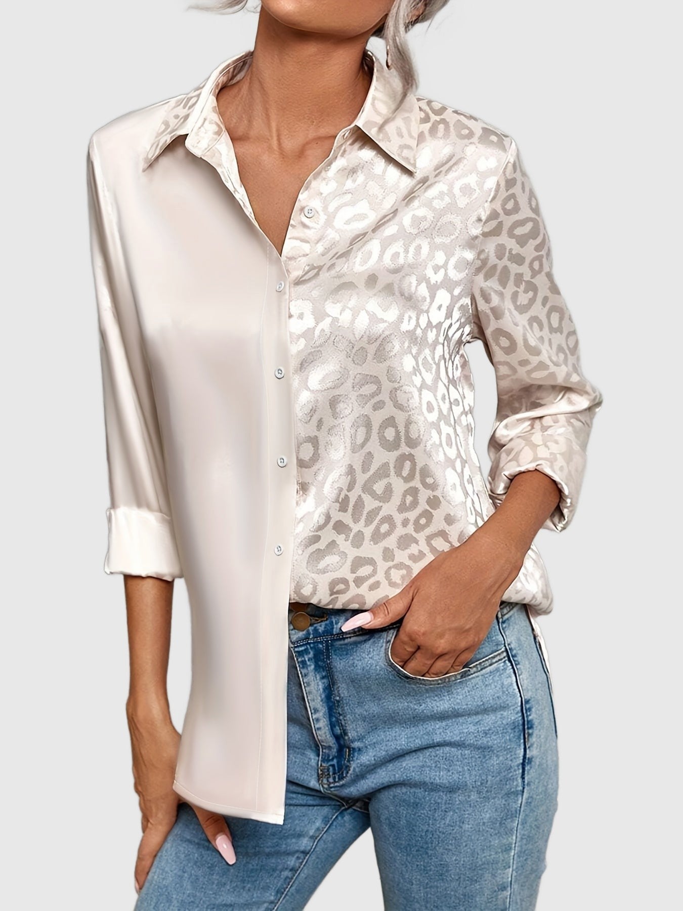 Amar™ Gwendolyn - חולצת סאטן דו-גוונית עם הדפס ג'קארד מנומר