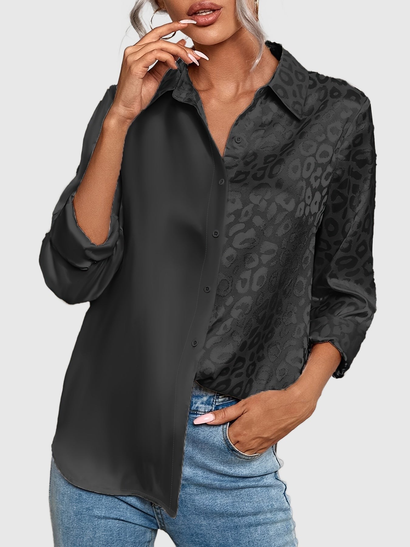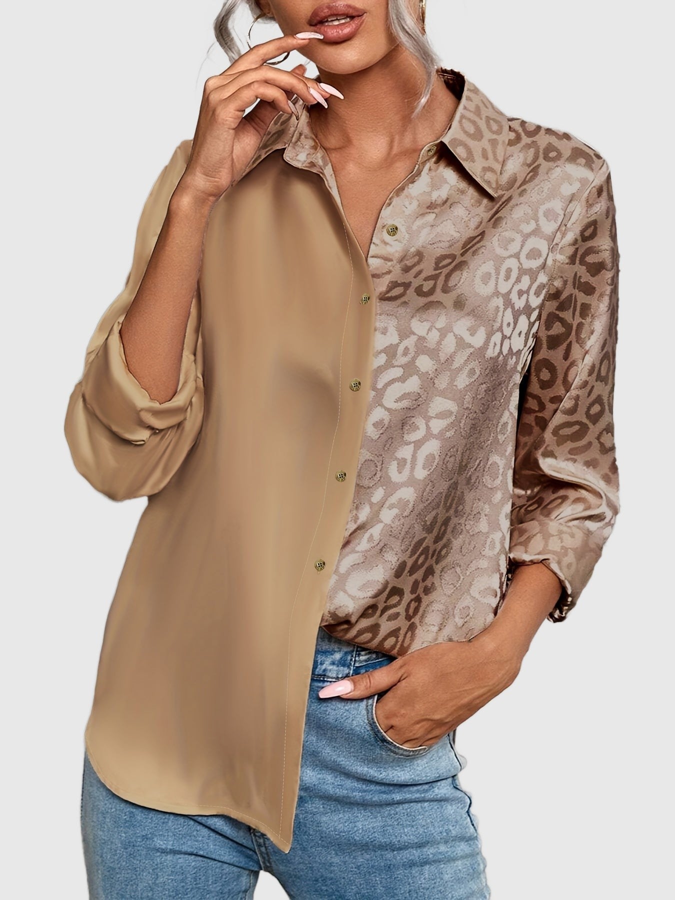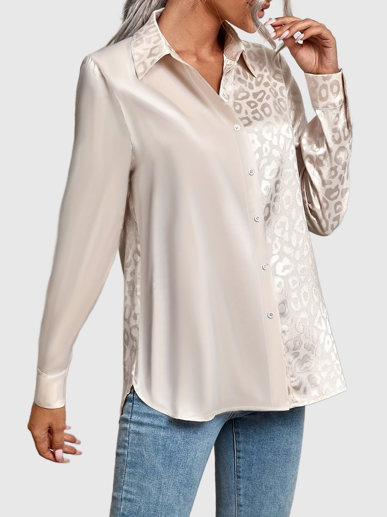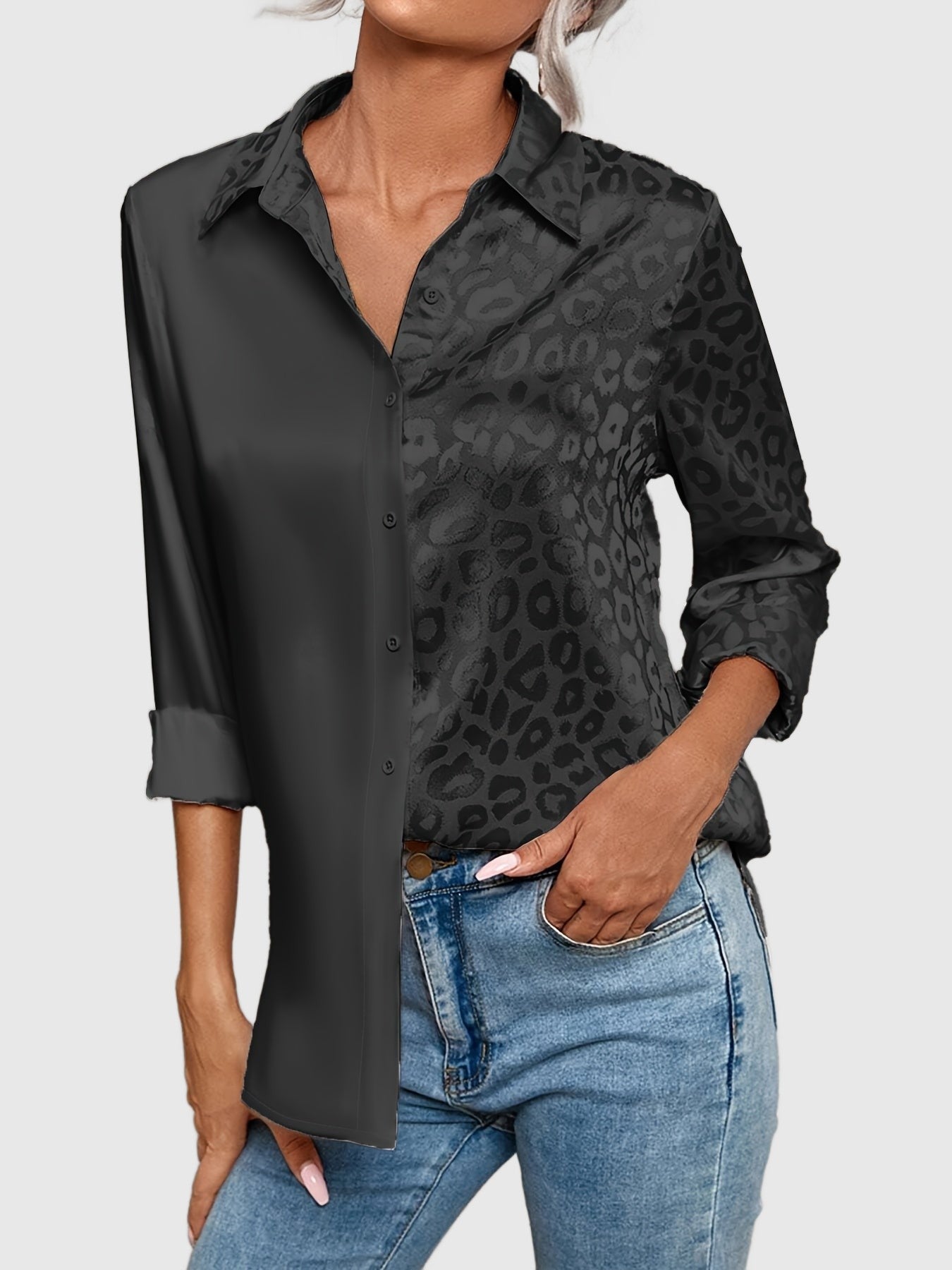 Amar™ Gwendolyn - חולצת סאטן דו-גוונית עם הדפס ג'קארד מנומר