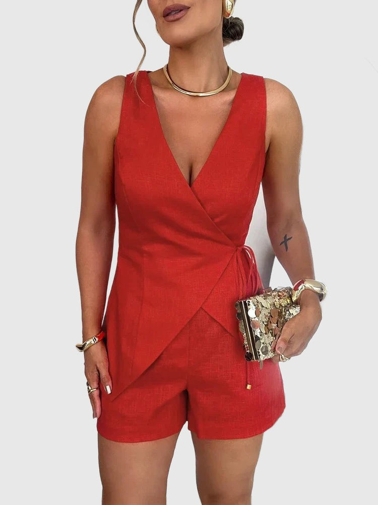 מחשוף V עם קשירה מחמיאה – הגזרה המלפפת מדגישה את קו המחשוף ומעניקה מראה רך אך מובנה. הקשירה בצד יוצרת טוויסט חזותי מהמם וגם מאפשרת התאמה מושלמת למבנה הגוף שלך – הדוק או רפוי, בדיוק כמו שאת אוהבת.