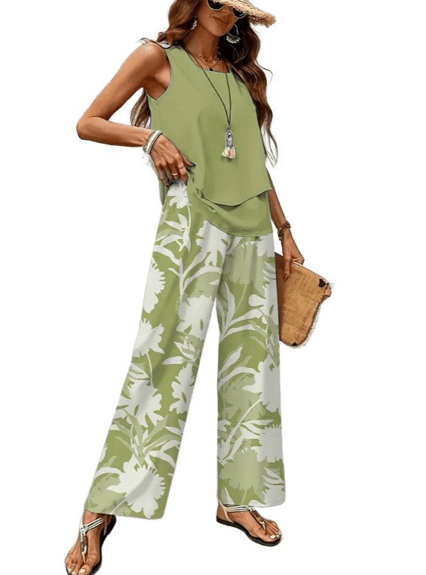 בחרתי בד רך ונושם שנשפך יפה לאורך הגוף, לא נצמד, אבל גם לא מסתיר — בדיוק האיזון שאת ואני מחפשות. החלק העליון מסתיר בעדינות את אזור הבטן, בלי לוותר על קו נקי ומחמיא. המכנסיים רחבים ונופלים באלגנטיות, עם גזרה שיוצרת מראה ארוך ורענן.