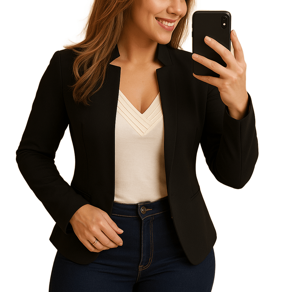 הכירי את Amar™ Sapir – הבלייזר הקליל והנשי שמשלב נוחות יומיומית עם סטייל נצחי. גזרה קלאסית, צווארון מהודר ובד נושם מעניקים לך מראה מתוחכם מבלי לוותר על תחושת קלילות.