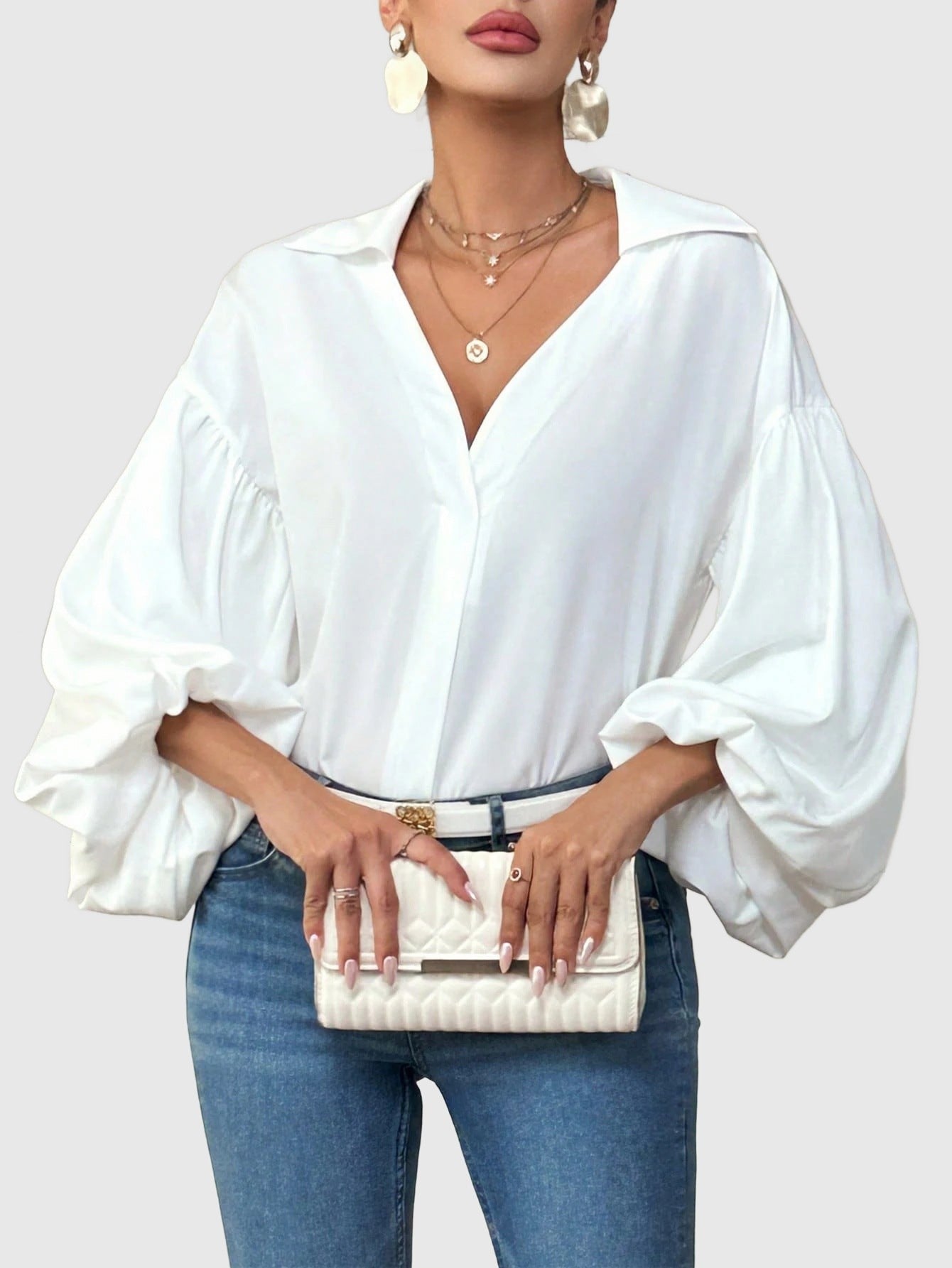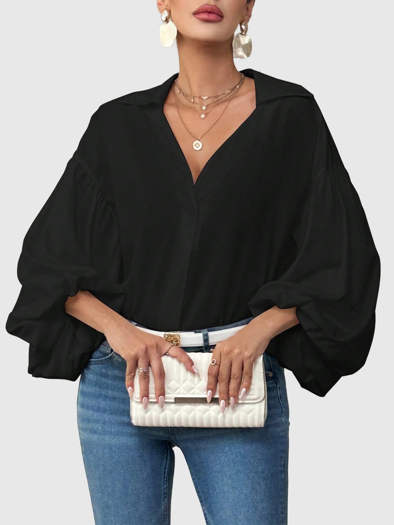 הגזרה הרפויה והעמק הנקי במחשוף יוצרים סילואט מחמיא שמרגיש טבעי ונוח לאורך כל היום. השרוולים המנופחים מוסיפים נוכחות אופנתית עוצמתית – כזו שתגרום לכל עיניים להסתובב אלייך.