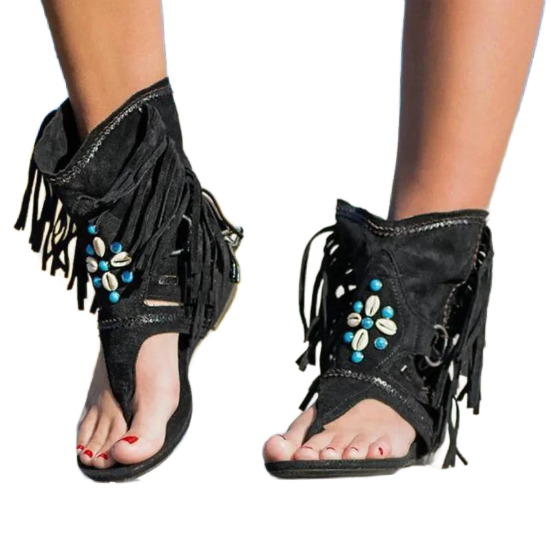 הפרנזים המתנפנפים, החרוזים והצדפים – כל פרט קטן נבחר בקפידה כדי לגרום לך לבלוט, מבלי להתאמץ. אלו הסנדלים שעושים אותך מיוחדת, בכל מקום ובכל רגע – מהחוף ועד לטיול עירוני.