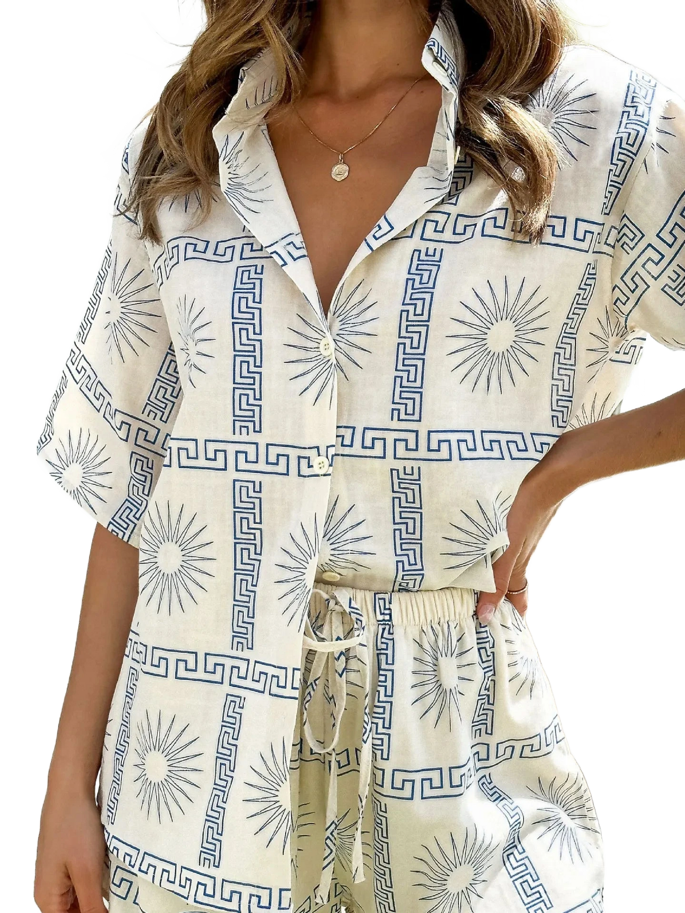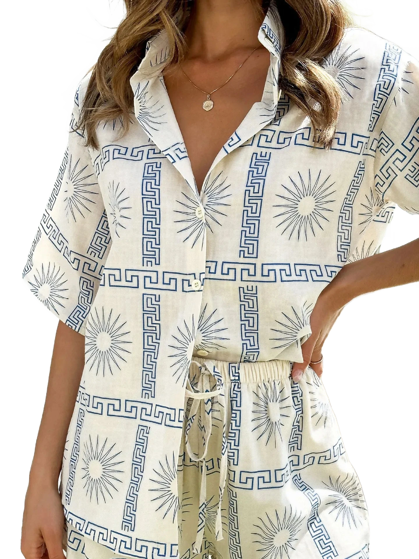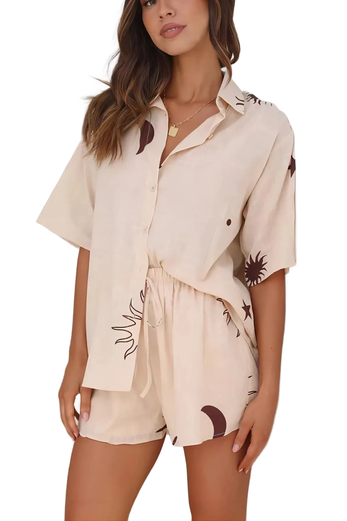 מרגישות מוכנות להרגיש מהממות בלי להתאמץ? Amar™ Aliza הוא הסט הקיץ המושלם שמשלב נוחות, סטייל ואווירת חופשה בכל צעד. חולצה קצרה עם שרוולים קצרים ומכנסיים קצרים ורחבים – כל פרט נבחר כדי שתראי מצוין ותרגישי מצוין.