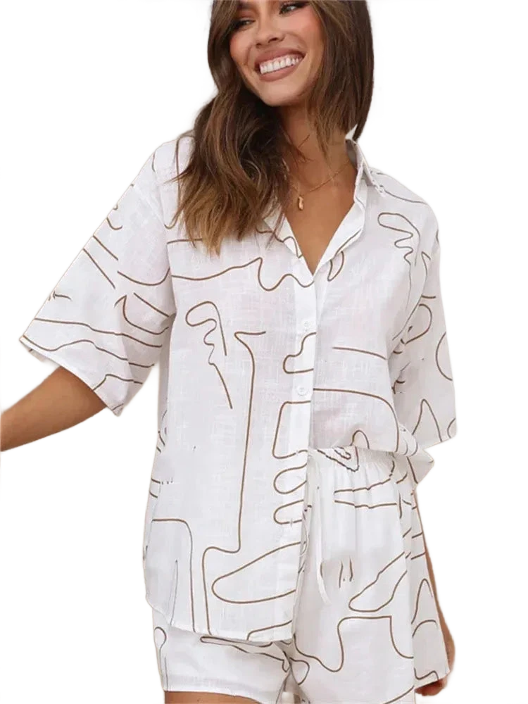 בדי קלילים, הדפסים טרנדיים וגזרה מחמיאה, הסט הזה הופך כל יום רגיל לרגע מיוחד. תדמייני את עצמך בפיקניק בעיר, בחוף או בערב קיצי קסום – Amar™ Aliza תמיד שם כדי להעצים את הלוק שלך.