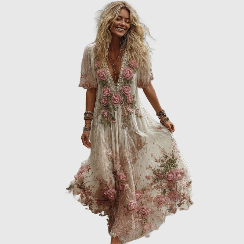 ✅ נגיעה בוהמיינית – שילוב של זרימה חופשית ורקמה מעודנת, מעניק איזון בין חן קליל לאלגנטיות מוקפדת.