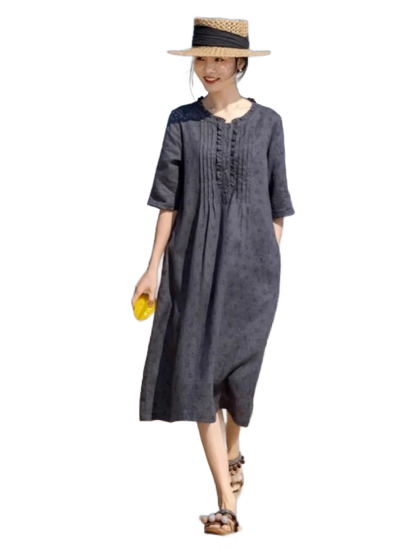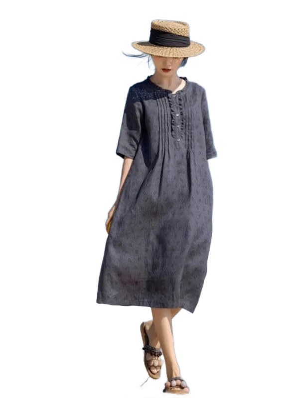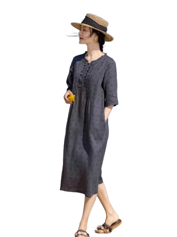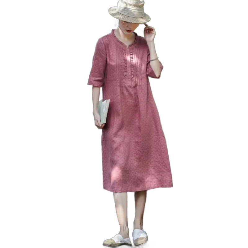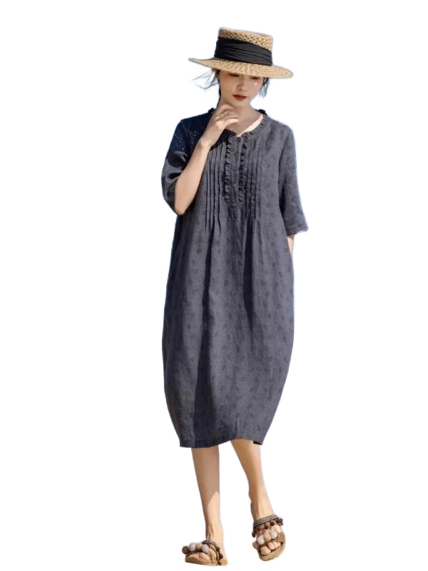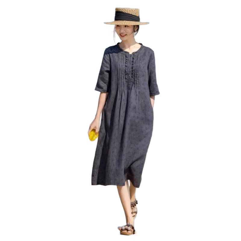 השמלה באורך מידי, בגזרה רחבה ונשית, מאפשרת לך חופש תנועה ונוחות מרבית. הבד משילוב כותנה-פשתן עם הדפס פרחוני עדין מעניק מראה טבעי ומרשים, מושלם ליום במשרד, לטיול בעיר או למפגש עם חברות.