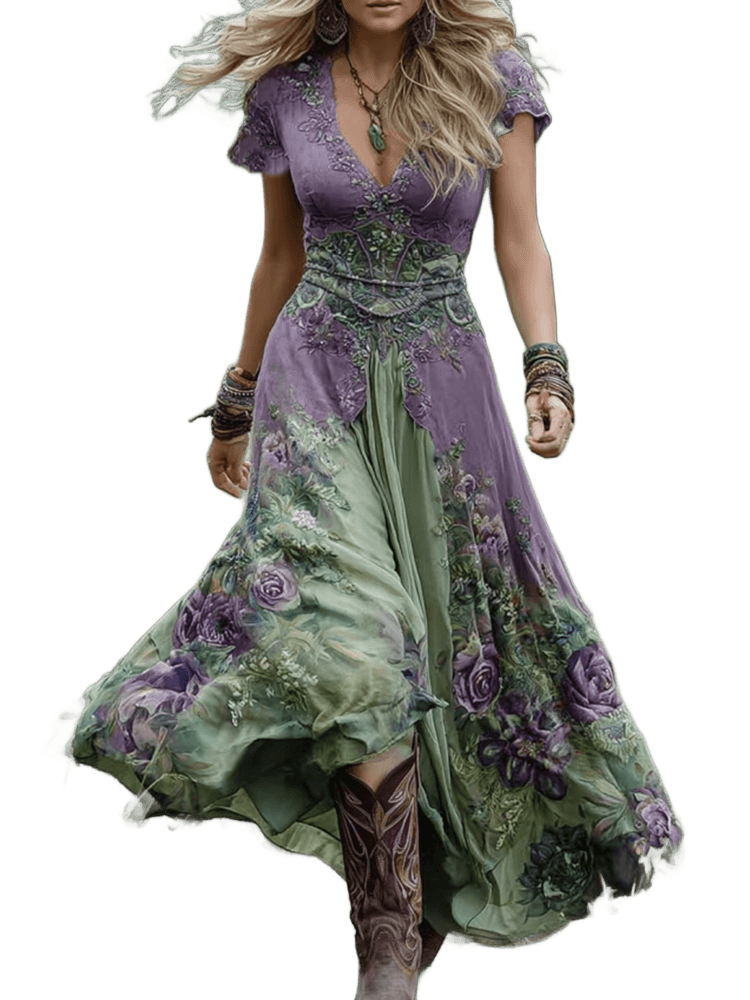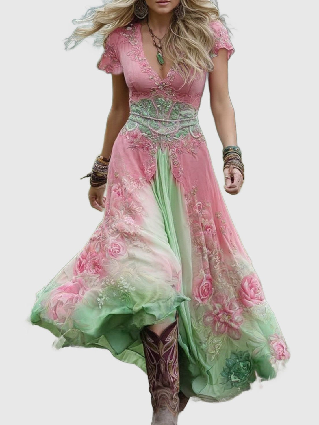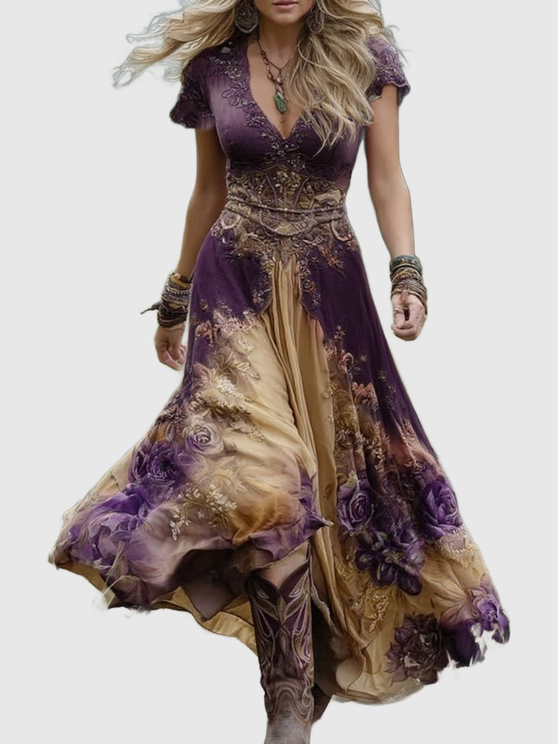 Amar™ Ruth - שמלת מקסי אלגנטית עם הדפס פרחוני