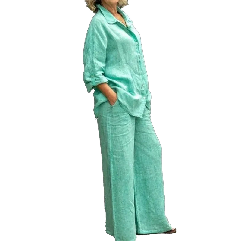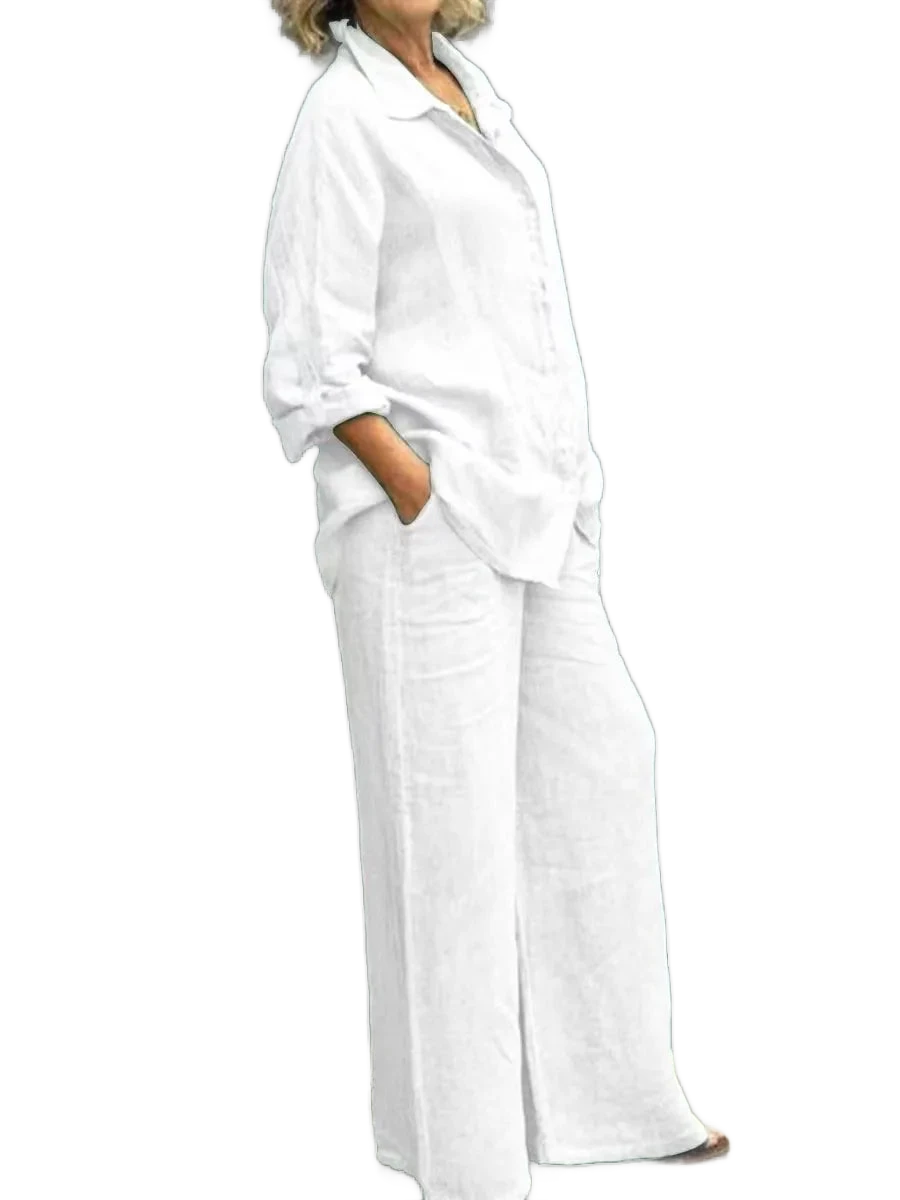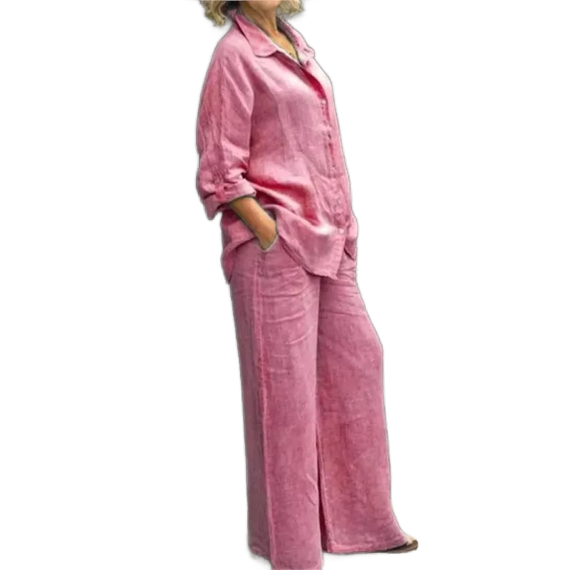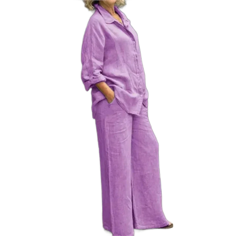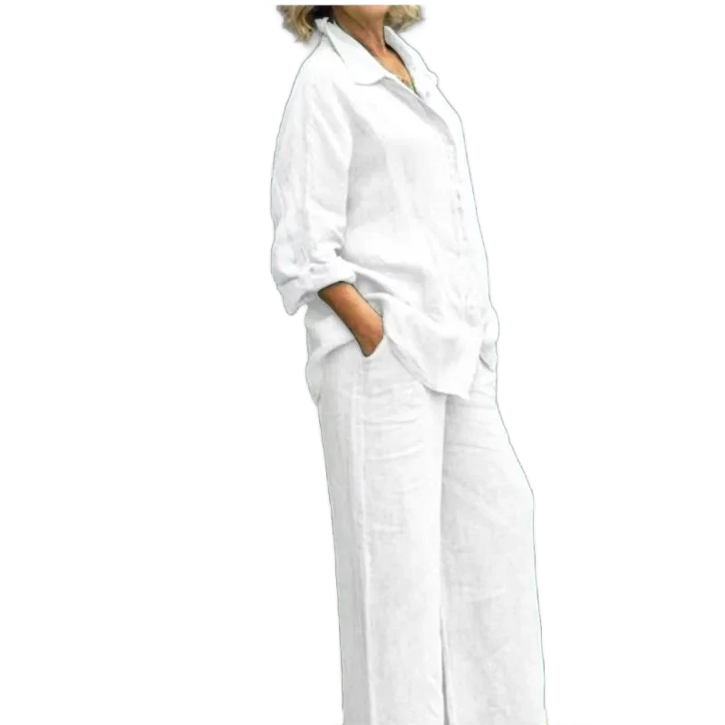 המכנסיים הרחבים יוצרים קו רגליים מחמיא.