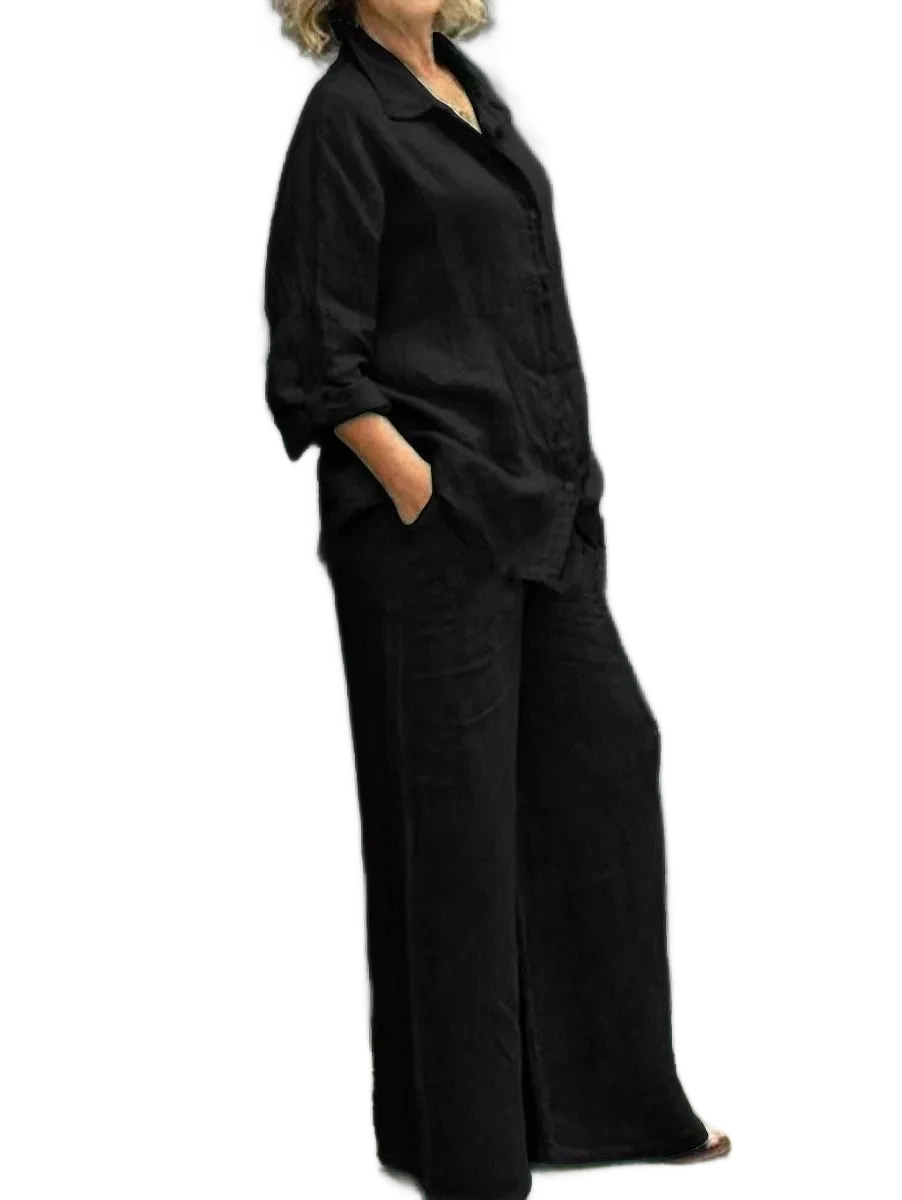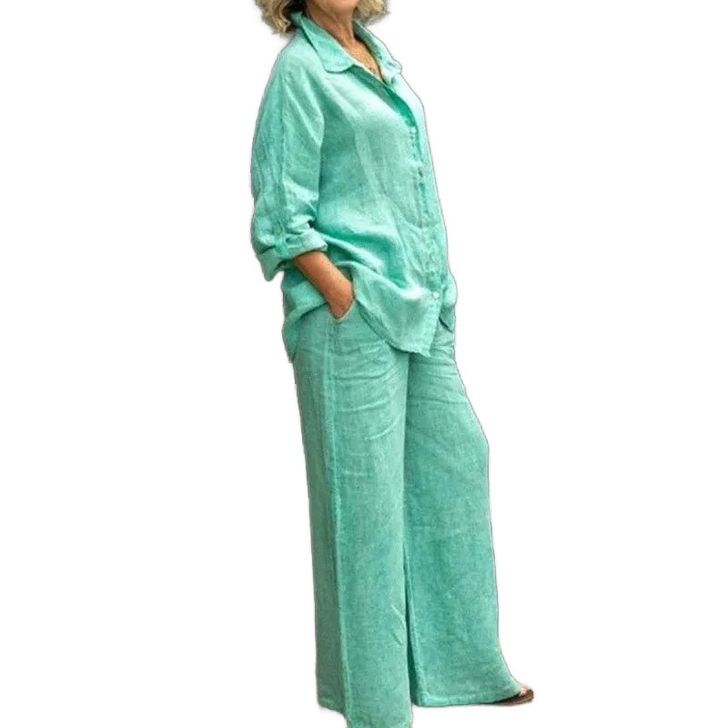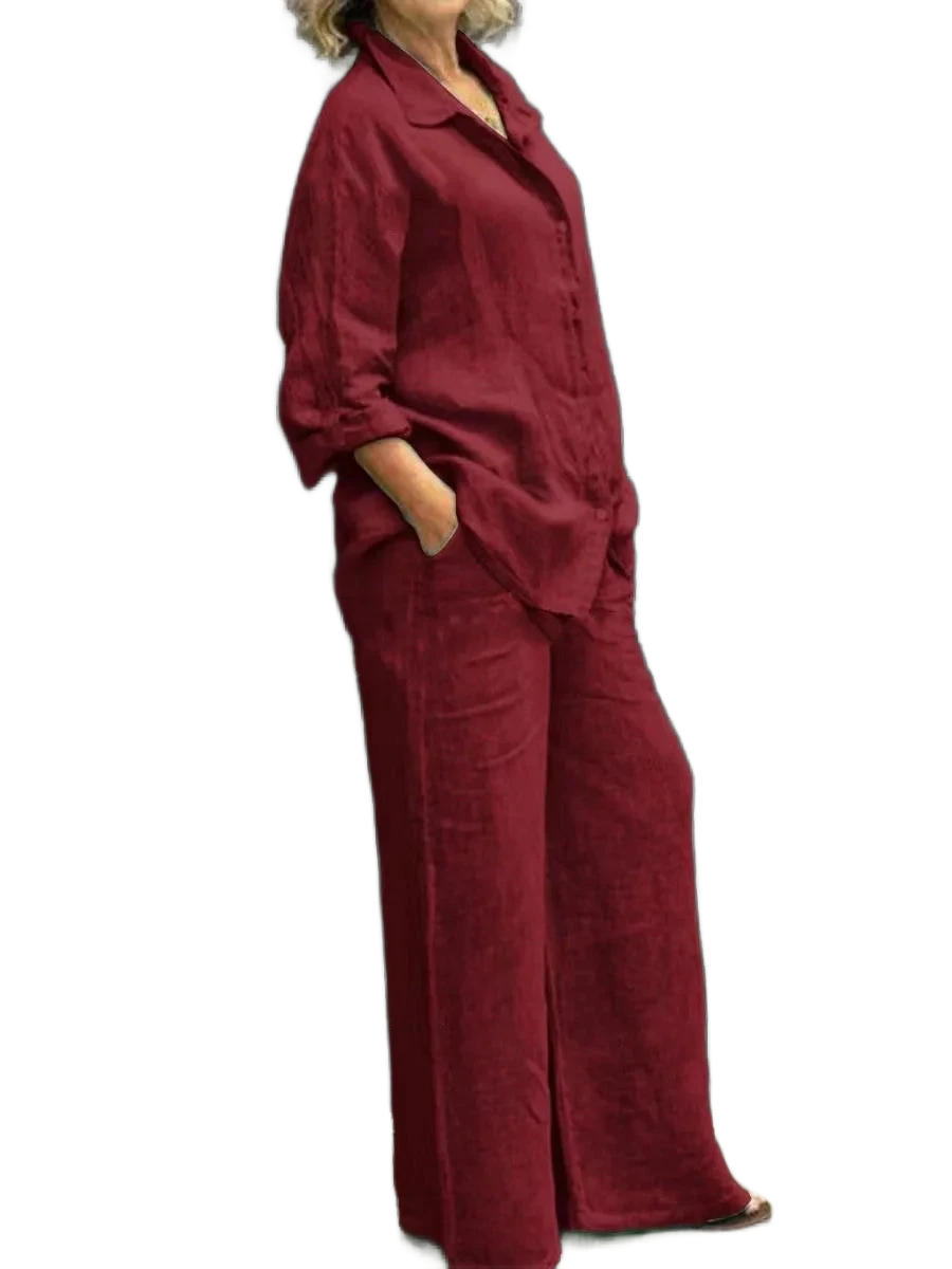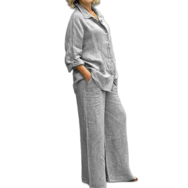 המכנסיים הרחבים יוצרים קו רגליים מחמיא.