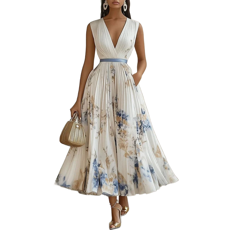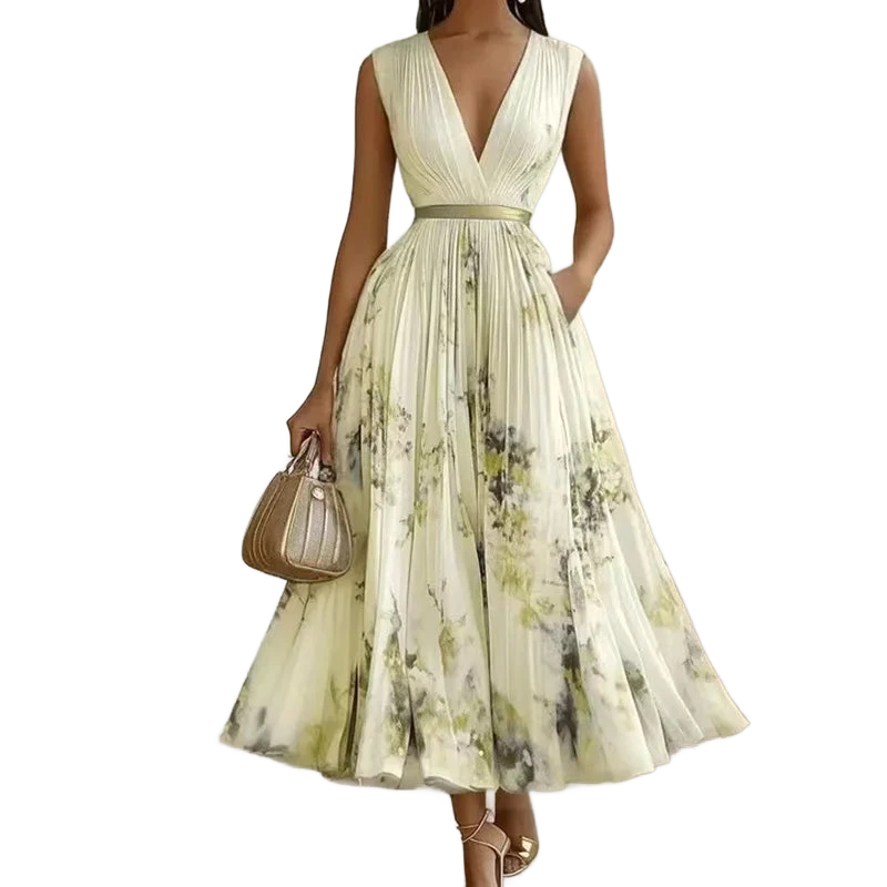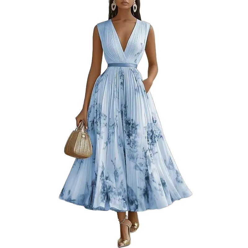 הגזרה בגובה המותן מדגישה את הקווים המחמיאים של הגוף, והחצאית המתנפנפת יוצרת תנועה רכה וזורמת. המחשוף בצורת V מוסיף נגיעה מחושבת של ביטחון עצמי. זו לא עוד שמלה – זו שמלה שגורמת לך לחייך למראה שלך במראה.