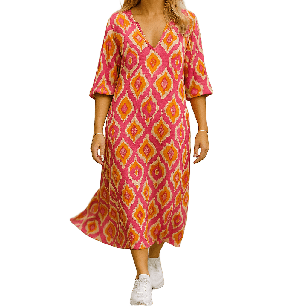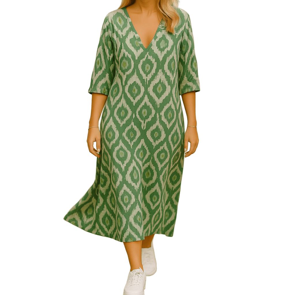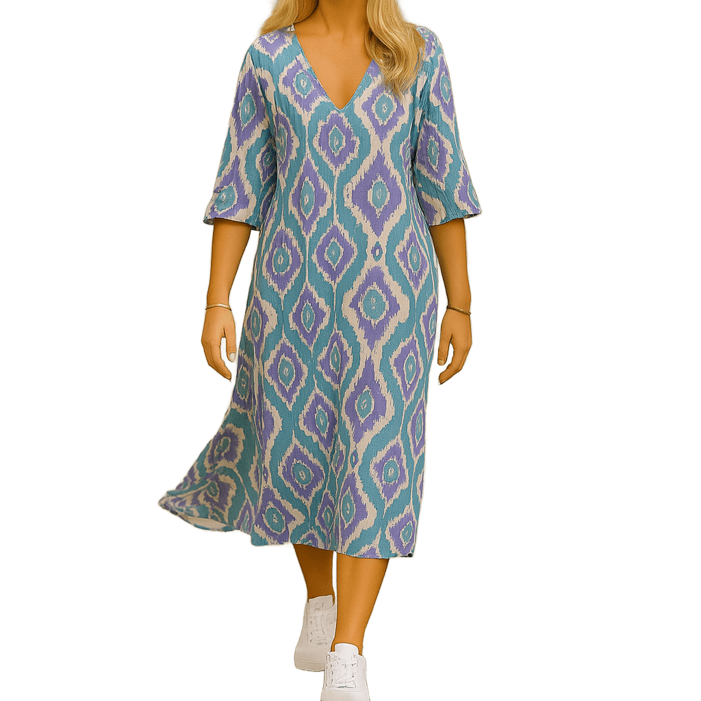 השמלה משלבת דוגמאות גיאומטריות מרהיבות עם גזרה רפויה ונוחה, כך שתוכלי להיראות מדהים ולהרגיש חופשייה – בלי להתאמץ. בין אם את מטיילת ברחובות העיר, יושבת בבית קפה קטן או נפגשת לערב עם חברים – Amar Einat תמיד תעניק לך מראה מלא חיים ואנרגיה.