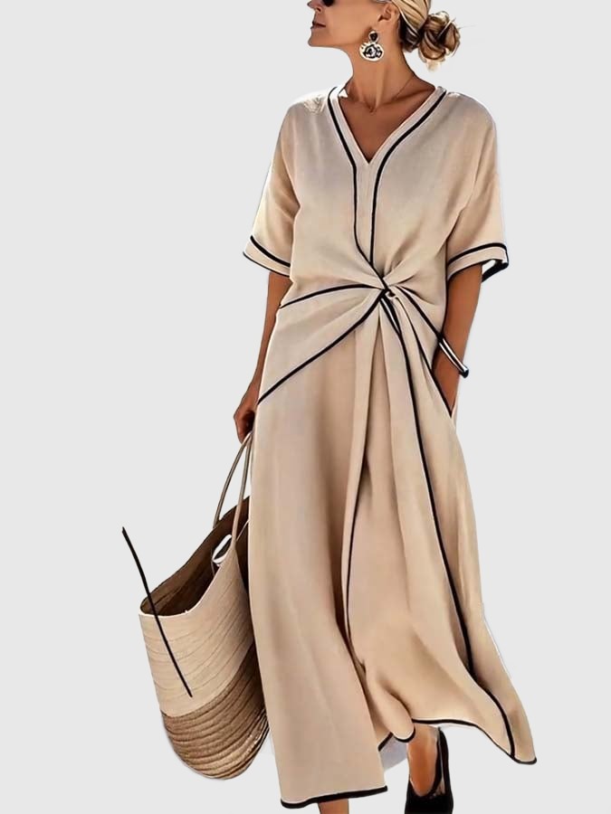 כל פרט בשמלה הזו מתוכנן במיוחד כדי להעניק לכן תחושת ביטחון ונוחות לאורך כל היום. עם צווארון וי מעודן שמלטף את הצוואר ויוצר מראה מלוטש ועדין, והשילוב המושלם של טוויסט קדמי שמחמיא ומעצים את הקימורים הטבעיים שלכן.