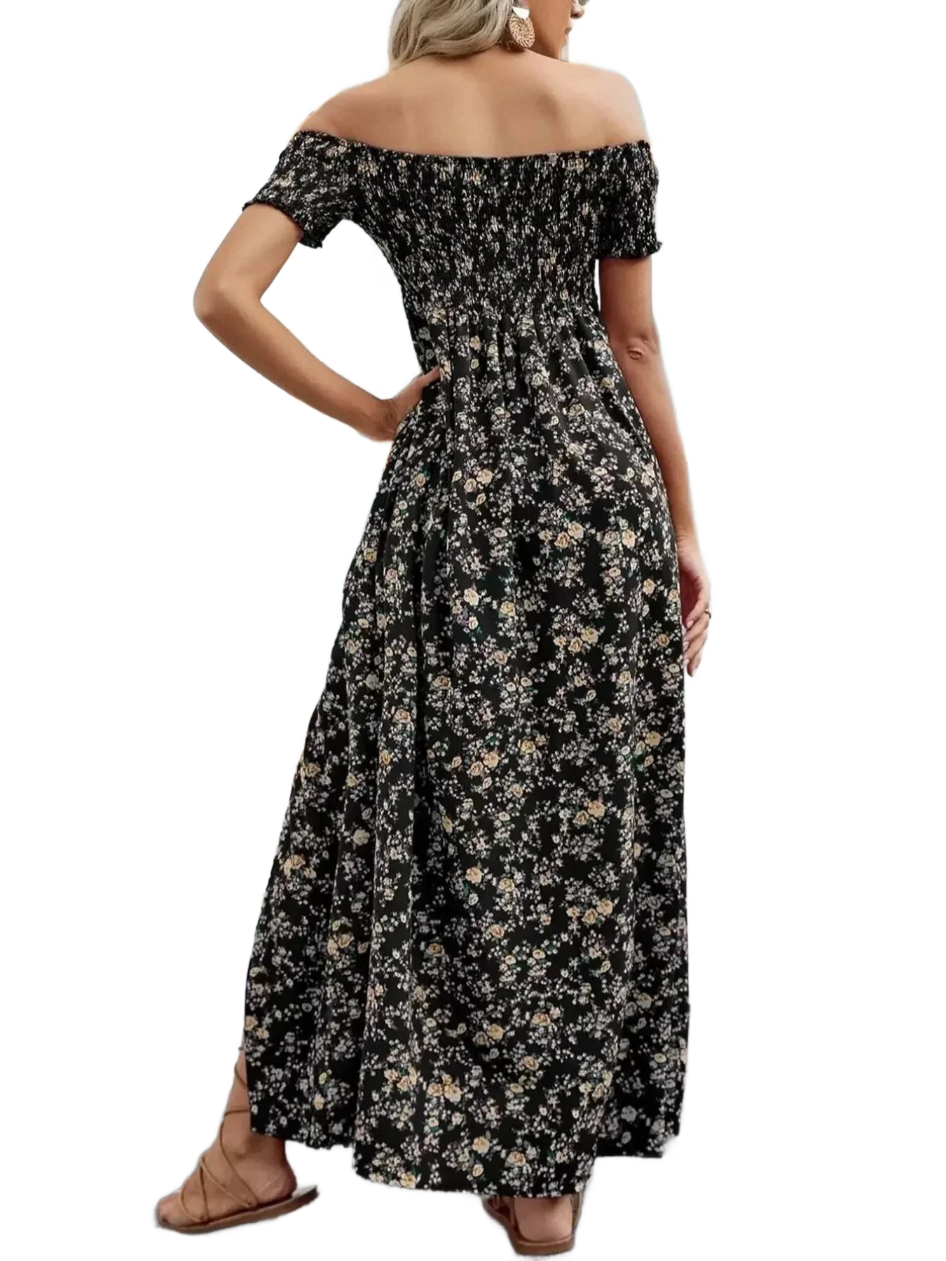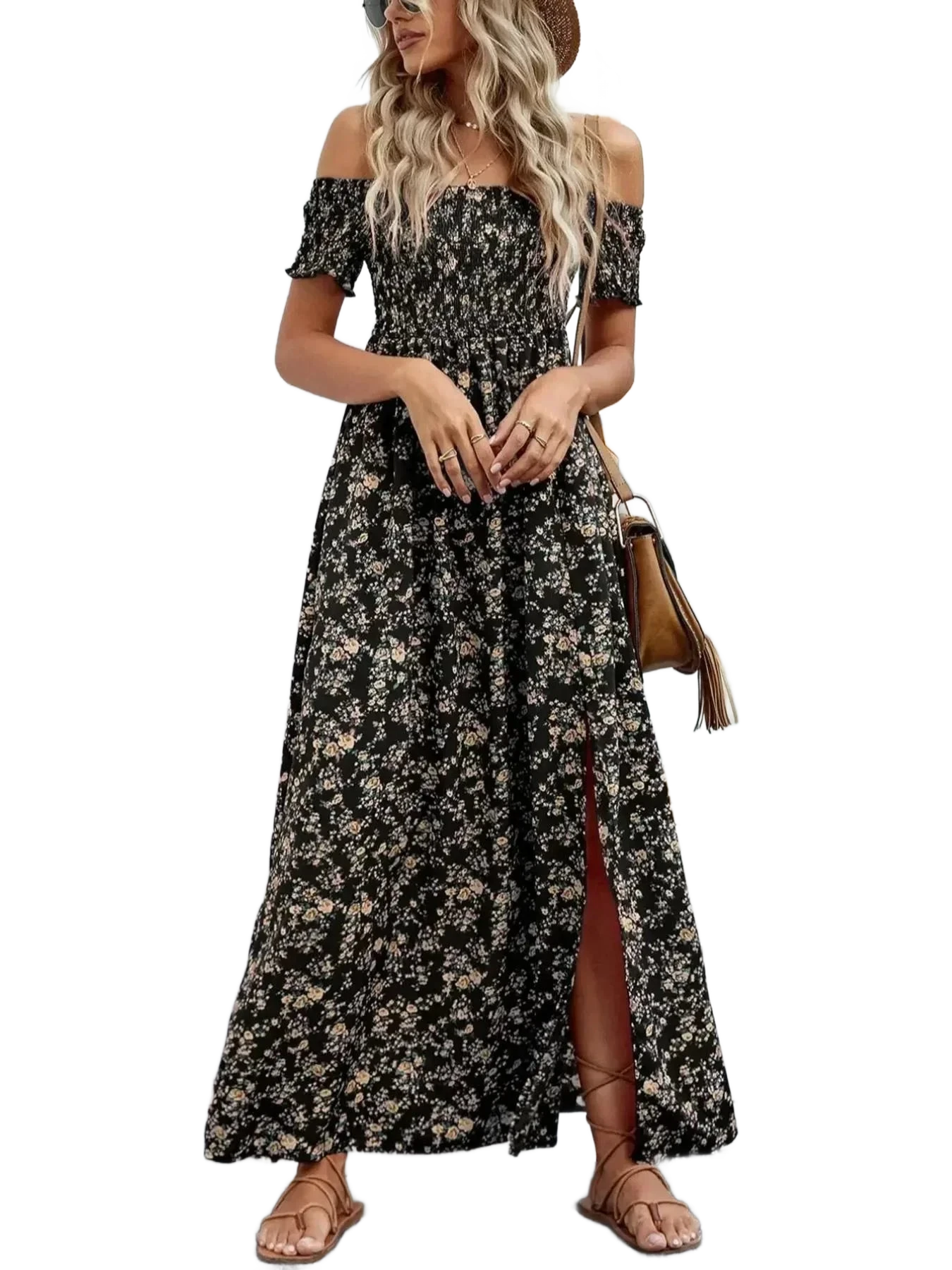 עם הדפס פרחוני רך, גזרה מחמיאה וקו שסוע עדין שמוסיף נגיעה מסתורית – זו לא רק שמלה. זו אמירה.