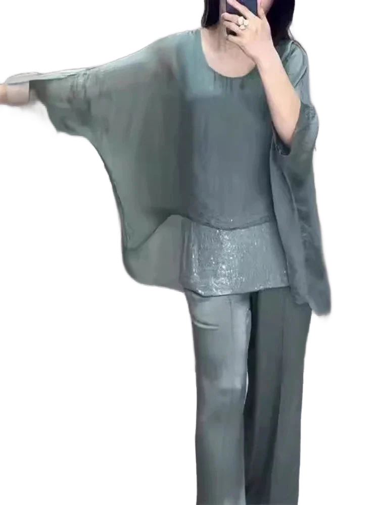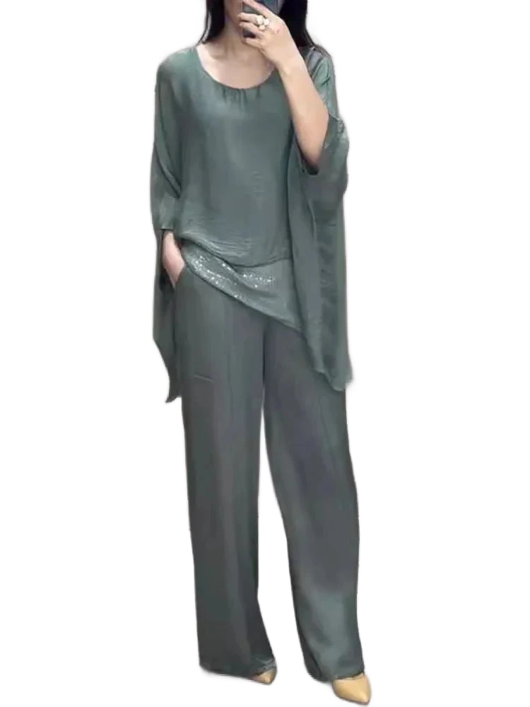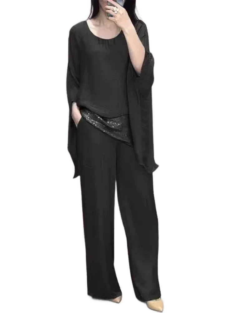 החולצה הרחבה יוצרת קו מחמיא שמטשטש את הבטן — בלי למשוך תשומת לב.