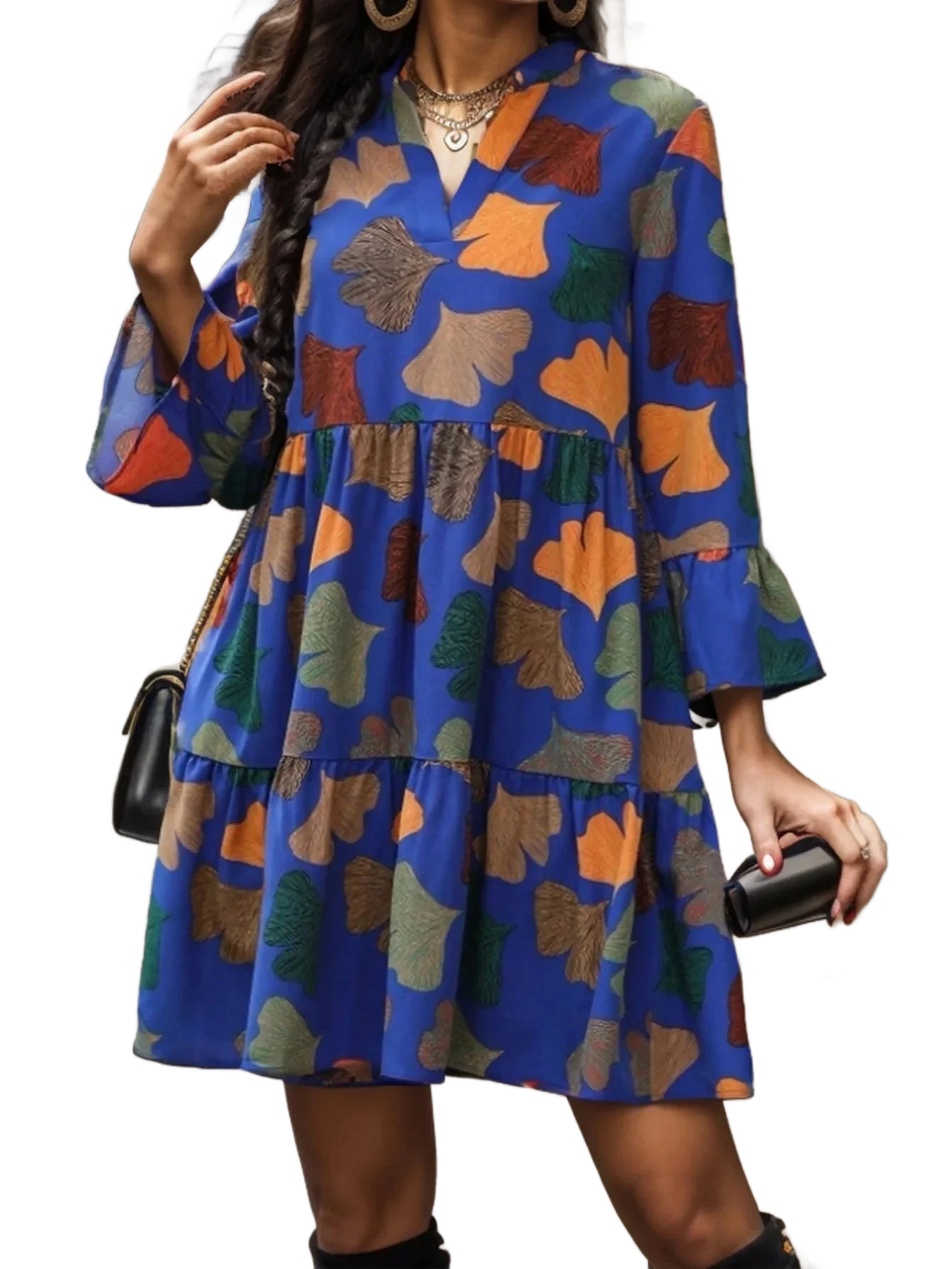 Amar™ Nurit - שמלת מקסי מודפסת עם שרוול ארוך