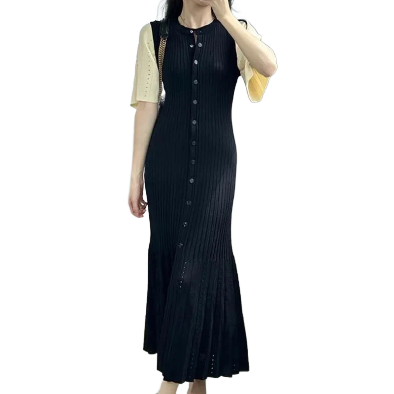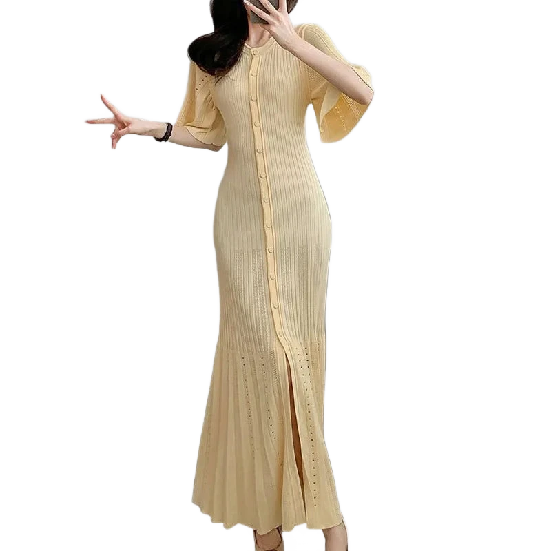 השילוב בין סריגה עדינה לגזרה צרפתית קלאסית מעניק לך מראה על-זמני, קליל אך מלא נוכחות. זנב הבת-ים מוסיף דרמטיות רכה, והחיתוכים המחטבים מבטיחים שתראי הכי זוהרת – מבלי להתאמץ.