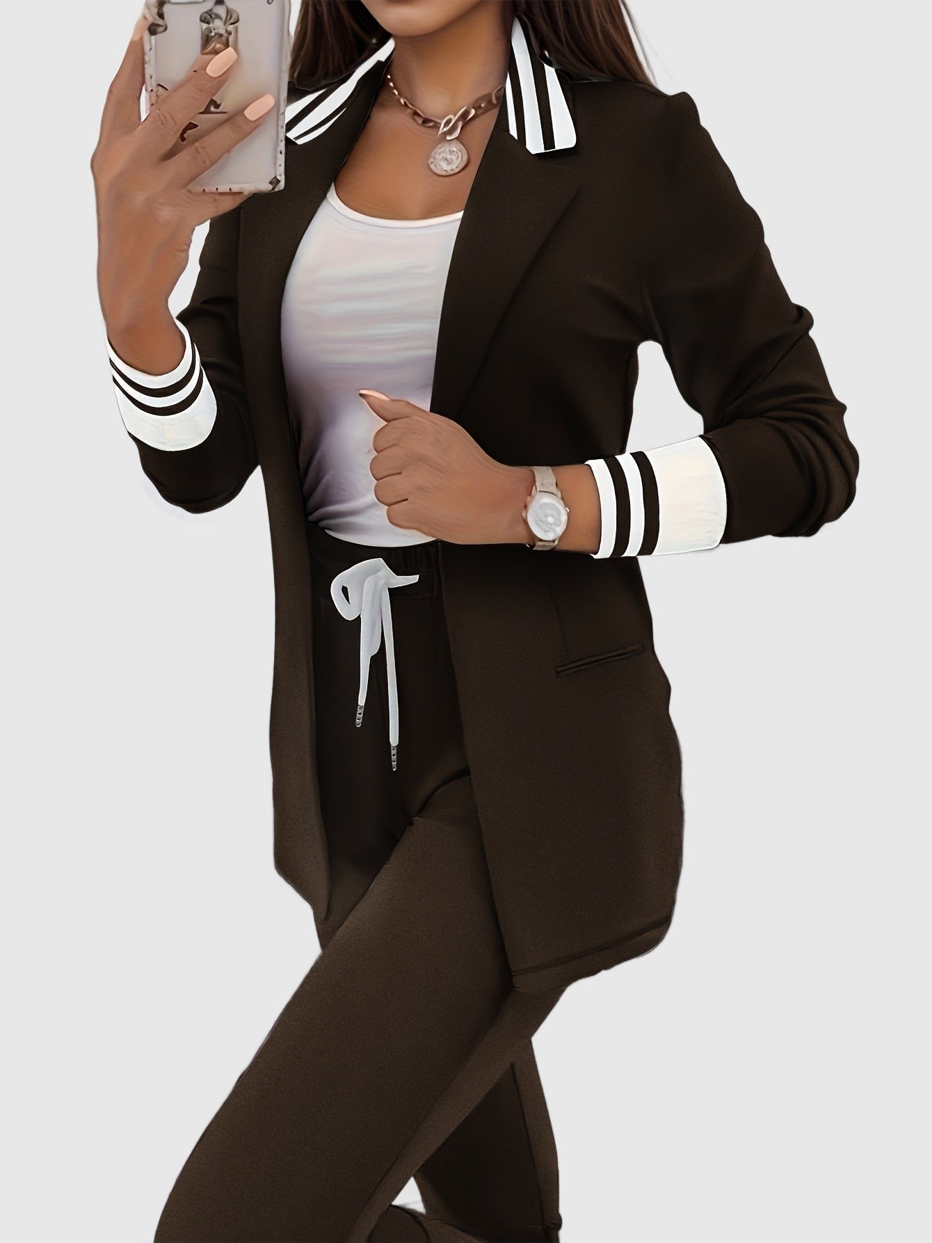 פסים אלגנטיים, גזרה מחויטת ומראה מודרני שנראה כאילו יצא ממגזין אופנה – זה הסט שהופך כל רגע להזדמנות להרשים. בין אם זו ישיבה עסקית או ברנץ' עם חברות, את תרגישי במיטבך.