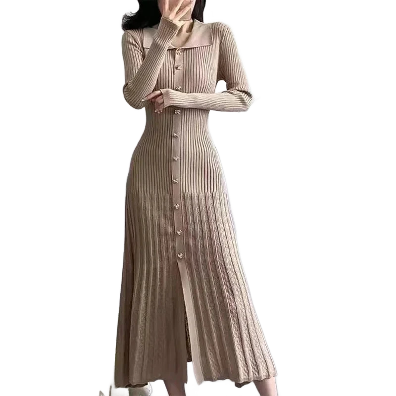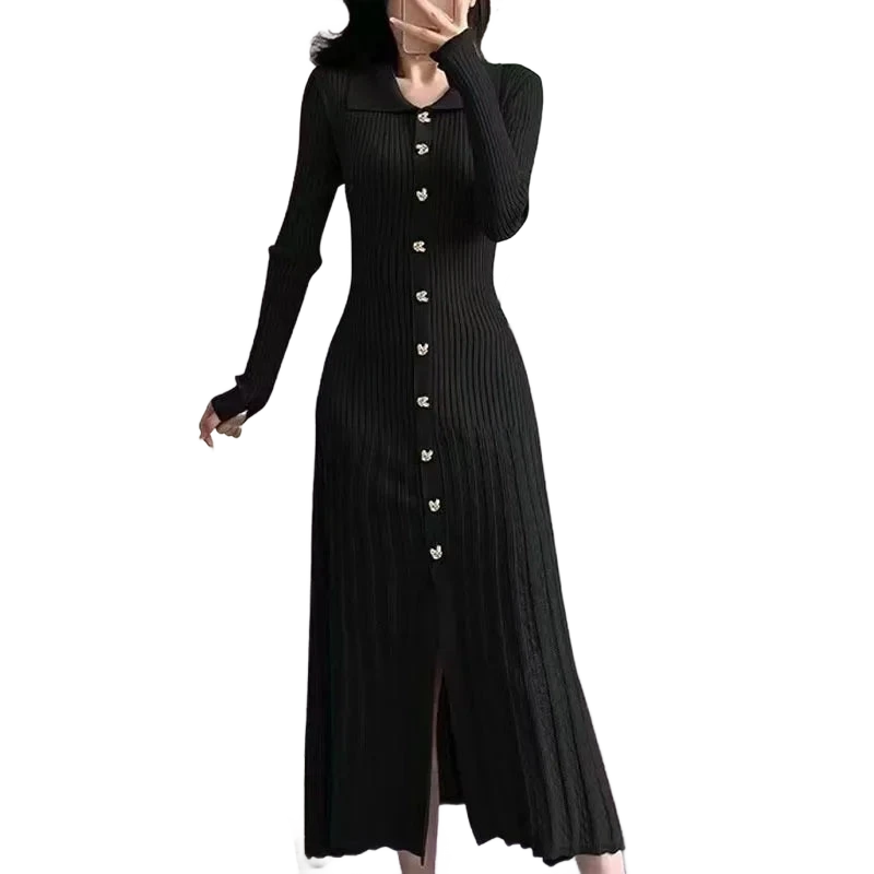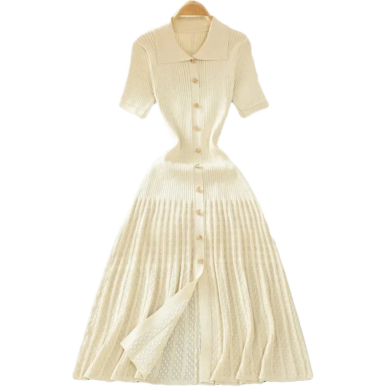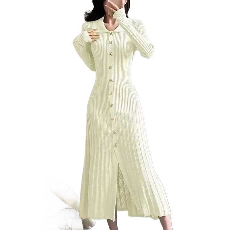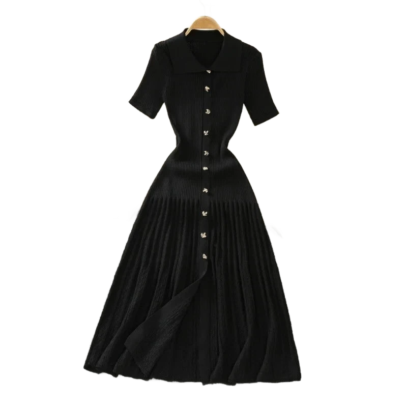 עיצוב עם צווארון פולו אלגנטי, כפתור מוזהב זוהר, וסריג מחטב שמלטף את הגוף – כל פרט נבנה כדי לגרום לך להרגיש בלתי נשכחת.