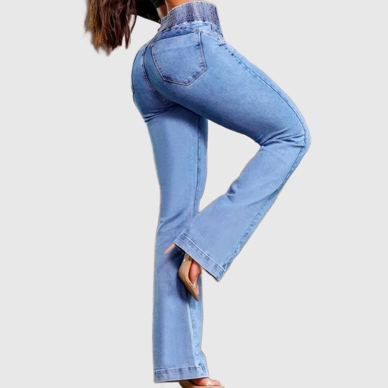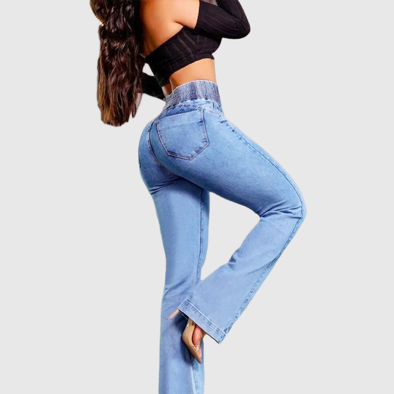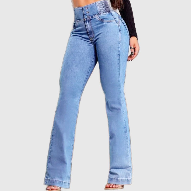 הג’ינס הזה משלב את הקסם הנצחי של הגזרה המתפרשת עם מותן גבוהה ובד סטרץ’ נעים וגמיש. התוצאה? מראה נשי, אלגנטי ומוארך – בלי לוותר על נוחות אמיתית לכל היום.