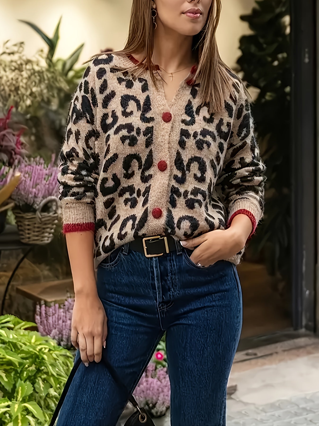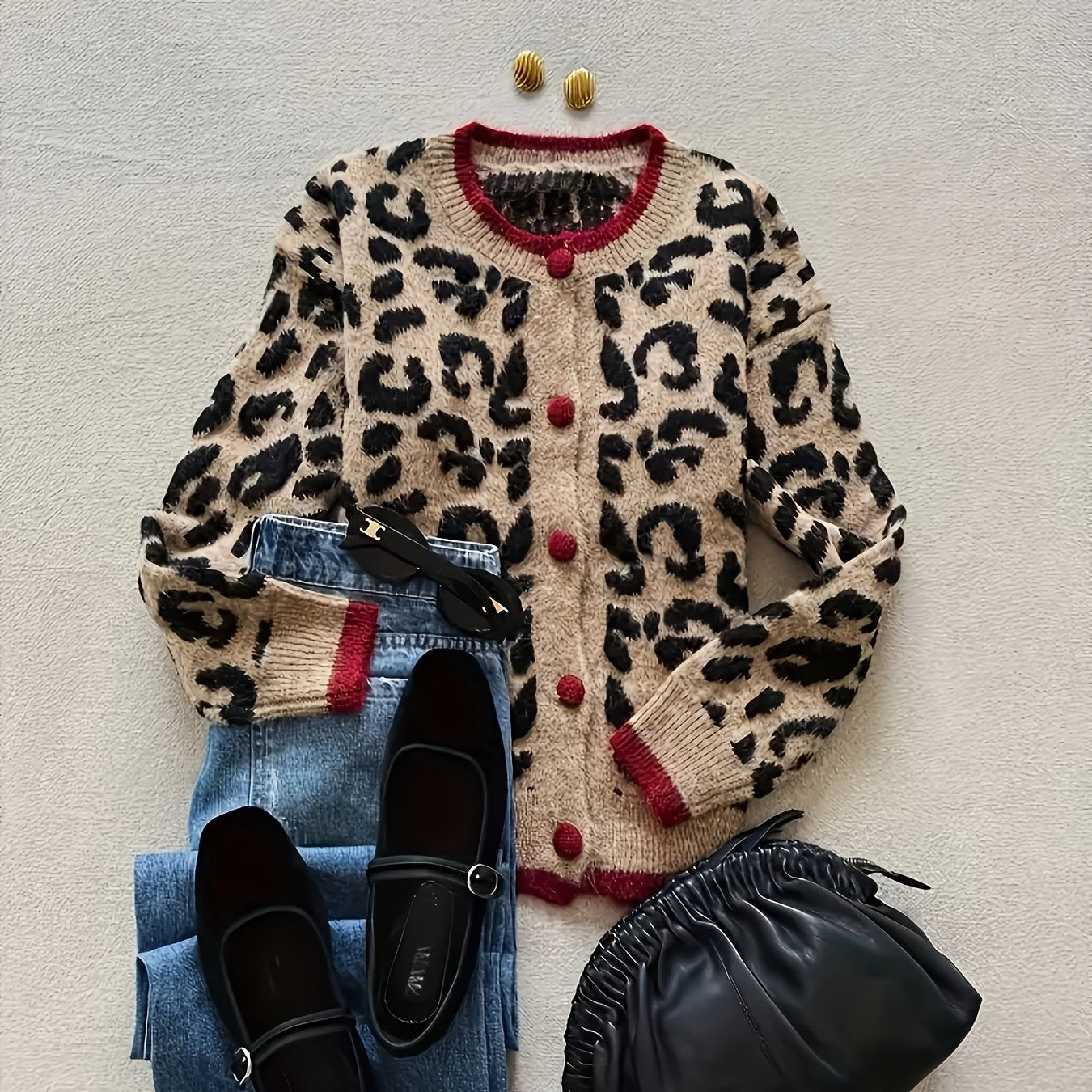 קרדיגן ליאו™ משלב הדפס מנומר עדין עם כפתורים אלגנטיים.