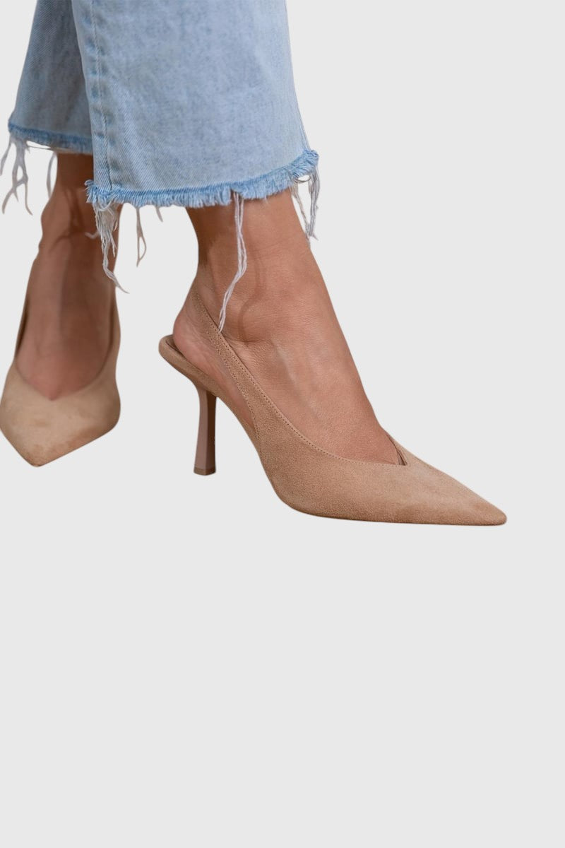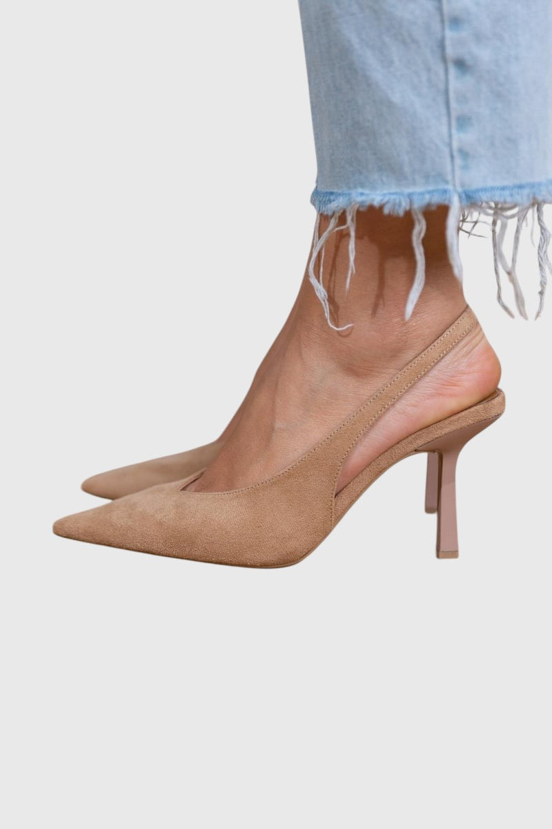 העקב הנמוך בצבע ניוד משלב פשטות מעודנת עם תחושה של סגנון נצחי. העיצוב האלגנטי שלו מאפשר התאמה קלה לתלבושות שונות, ומוסיף נגיעה של תחכום מבלי להיות משתלט.