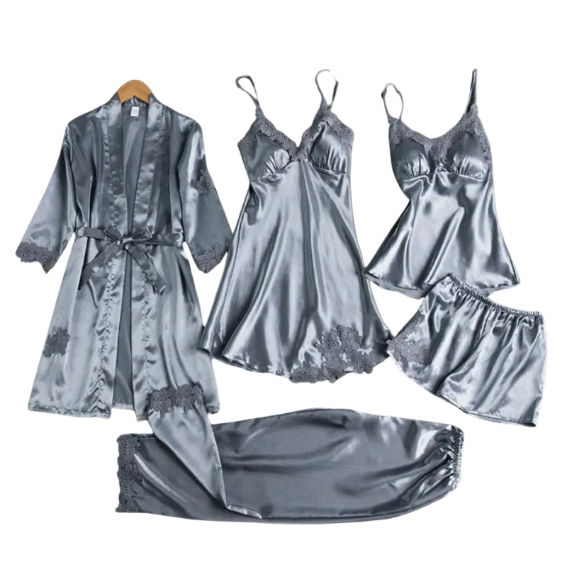 5 חלקים שימושיים – חלוק, כותונת, גופיית קמי, מכנס קצר ומכנס ארוך – להתאמה לכל מצב רוח.